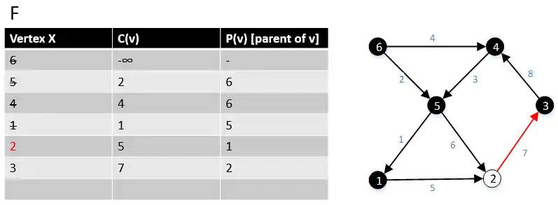 Initially, F = {s} where s is the starting point of the graph G and c(s) = -∞