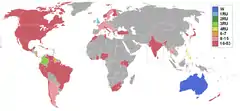 Countries and territories which sent delegates and results