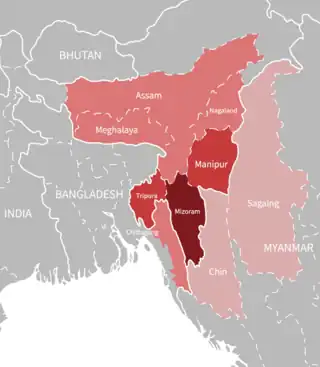 | Region | Mizoram, Manipur, Tripura, Assam, Chittagong Hill Tracts |