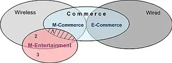 Mobile entertainment comprises a range of activities associated with mobile electronics.[1] The definition is both somewhat subjective and in continual development, but can include purely leisure activities (music, playing games), communications (social media, instant messaging, Twitter), and activities which could also be defined as commerce (shopping).
