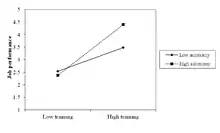 To probe the interaction effect, it is often helpful to plot the effect of X on Y at low and high values of Z (some people prefer to also plot the effect at moderate values of Z, but this is not necessary). Often values of Z that are one standard deviation above and below the mean are chosen for this, but any sensible values can be used (and in some cases there are more meaningful values to choose). The plot is usually drawn by evaluating the values of Y for high and low values of both X and Z, and creating two lines to represent the effect of X on Y at the two values of Z. Sometimes this is supplemented by simple slope analysis, which determines whether the effect of X on Y is statistically significant at particular values of Z. A common technique for simple slope analysis is the Johnson-Neyman approach.[11] Various internet-based tools exist to help researchers plot and interpret such two-way interactions.[12]