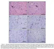 Modoc virus antigen in spinal cord and brain