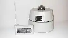 The second "Modulus" configuration, the Service Robot, is obtained by fitting the Techno-cake home-security and service unit on to the Base. One of the components allow the robot to signal the presence of smoke, gas, water, and intruders; at the first sign of danger it informs the computer or triggers a siren or preset vocal message. An arm with ample freedom of movement and considerable gripping power can be added to the Service Robot. Using its meteo-system, the robot will fetch its owners umbrella if it is going to rain; a simple whistle will bring it toddling over to you.