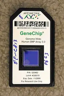 - ↑ Pfundt R, Kwiatkowski K, Roter A, Shukla A, Thorland E, Hockett R, DuPont B, Fung ET, Chaubey A (February 2016). "Clinical performance of the CytoScan Dx Assay in diagnosing developmental delay/intellectual disability". Genetics in Medicine. 18 (2): 168–73. doi:10.1038/gim.2015.51. hdl:2066/167658. PMID 25880438.