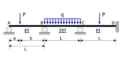• Flexural rigidities are EI, 2EI, EI respectively.