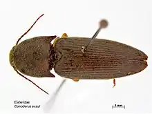 Monocrepidius exsul, known generally as the pasture wireworm or sugarcane wireworm, is a species of click beetle in the family Elateridae.