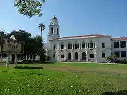 Monrovia High School is a public high school located in Monrovia, California, a northeastern suburb of Los Angeles, United States. Monrovia High School is the only grades 9–12 comprehensive high school in the Monrovia Unified School District. Established in 1893, the campus is located in an environment of neo-Spanish architecture, green lawns, hundred-year-old oak trees, and is nestled against the San Gabriel Mountains. The portion of the campus designed in 1928 is the work of noted Los Angeles architect John C. Austin.