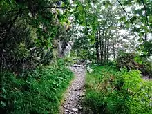In ancient times, the Cingolo Rosso mule track, which ascends for about 9 kilometers from the built-up area of Bollone to Bocca Cocca, represented the main link in use among the people of the Vestino Valley to connect with the people of the Chiese Valley, to which it was administratively linked with the feud of the Lodron counts until 1802 and to the Austrian Empire until May 1915. To allow an agile and safe passage, the route was constantly maintained, refitted at various times to military needs and widened at their own expense by the valley communities. The history of the Vestino Valley made up of merchants, peasants, cavalrymen, charcoal burners, bandits of the 16th and 17th centuries, bishops or their delegates, postal pawns, German mercenaries on their way to the sack of Brescia in 1512, the armies of the Republic of Venice in 1516, and all those coming down from northern Europe and intending to avoid the bulwark of the Rocca d'Anfo, were either headed to the Po Valley or passing through it.[1] According to chronicles, oral tradition and legends, in 1166 Emperor Frederick Barbarossa passed through there coming from the port of Toscolano and heading to Val Camonica, while in November 1526 it was traversed by some 20,000 Landsknechts under the command of Georg von Frundsberg, who, climbing from Bondone on Mount Calva, the Cingolo Rosso and Mount Stino, descended on the Venetian Capovalle, setting it on fire and then proceeding to the Po Valley.
