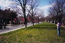 Monument Avenue is the site of several annual events, particularly in the spring, including an annual Monument Avenue 10K race and "Easter on Parade",[8] when many Richmonders stroll the avenue wearing Easter bonnets and other finery.[9] Prior to 2020, at various times (such as Robert E. Lee's birthday and Confederate History Month), the Sons of Confederate Veterans gathered along Monument Avenue in period military costumes.