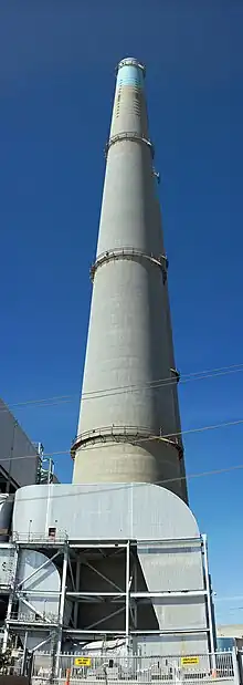 The Moss Landing Power Plant is a natural gas powered electricity generation plant located in Moss Landing, California, United States, at the midpoint of Monterey Bay. Its large stacks are landmarks, visible throughout the Monterey Bay Area. The plant is owned and operated by Houston-based Dynegy and currently has a generation capacity of 1020 MW (net) from its two combined cycle generation units.[3] It was once the largest power plant in the state of California, with a generation capacity of 2560 MW, before its two large supercritical steam units were retired in 2016.