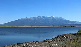 Blanca Peak (Navajo: Sis Naajinį́; Ute: Peeroradarath; Tewa: Pintsae'i'i) is the fourth highest summit of the Rocky Mountains of North America and the U.S. state of Colorado. The ultra-prominent 14,351-foot (4,374 m) peak is the highest summit of the Sierra Blanca Massif, the Sangre de Cristo Range, and the Sangre de Cristo Mountains. The fourteener is located 9.6 miles (15.5 km) north by east (bearing 9°) of the Town of Blanca, on the drainage divide separating Rio Grande National Forest and Alamosa County from the Sangre de Cristo Land Grant and Costilla County. The summit is the highest point of both counties and the entire drainage basin of the Rio Grande. Below the steep North Face of Blanca Peak two live Glaciers once developed, until extinction sometime after 1903. North & South Blanca Glaciers were located at 37° 35N.,longitude 105° 28W. Blanca Peak is higher than any point in the United States east of its longitude.[lower-alpha 2][1][2][5]