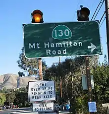 State Route 130 begins its ascent from the junction at Alum Rock Road.