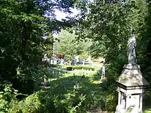 The cemetery contains two non-denominational chapels which the Friends group refers to by their construction dates: the 1862 Chapel and the 1912 Chapel.[2] Neither has been used for decades and as of 2020 both are closed to the public due to their structural deterioration.[3]