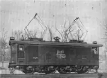 New Haven EP-1 No. 020, circa 1907. Note the small DC pantograph between the two larger AC pantographs