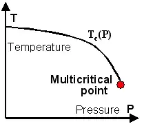 As an example consider a substance ferromagnetic below a transition temperature , and paramagnetic above . The parameter space here is the temperature axis, and the critical manifold consists of the point . Now add hydrostatic pressure to the parameter space. Under hydrostatic pressure the substance normally still becomes ferromagnetic below a temperature ().