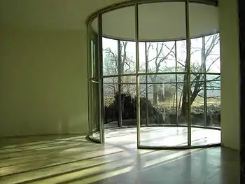 The inception of the Museum Insel Hombroich occurred in 1982 when real estate agent and art collector Karl Heinrich Müller purchased Rosa Haus ("Pink House"), an overgrown industrialist's villa with a garden, which was built in 1816. Müller's intended to support local artists and architects. Landscape architect Bernhard Korte, who was commissioned to redesign the park, restored the old gardens and created minimalist landscapes. From 1982 to 1994 sculptor Erwin Heerich created eleven exhibition pavilions, which Müller called "chapels in the landscape".[1] Heerich's elemental sculptures became the design base for these gallery pavilions.[2]
