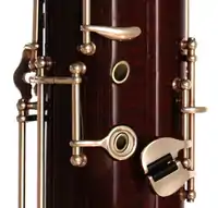 - the aulos, usually double, consisting of two double-reed (like an oboe) pipes, not joined but generally played with a mouth-band to hold both pipes steadily between the player's lips. Modern reconstructions indicate that they produced a low, clarinet-like sound. There is some confusion about the exact nature of the instrument; alternate descriptions indicate single-reeds instead of double reeds.