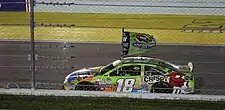 His 2012 season in the Sprint Cup Series began with a win in the Budweiser Shootout at Daytona International Speedway, his first win in the event; his margin of victory over Tony Stewart, 0.013 seconds, was the closest in the event's history.[120] Busch had managed to save his car a few laps before the finish, though his brother Kurt was caught up in the resulting multi-car crash that left Jeff Gordon upside-down. However Busch's only win in a Sprint Cup points event during the year came at Richmond in the Capital City 400 in April, the fourth straight year he won the event;[121] he nearly won at Watkins Glen International before, on the final lap, hitting oil on the track from Bobby Labonte's car and being spun by Brad Keselowski, giving the win to Marcos Ambrose. He finished 7th.[122] He failed to make the Chase for the Sprint Cup,[123] finishing 13th in Sprint Cup points, and was winless in Nationwide Series and Camping World Truck Series competition.[124] Despite the fact he was not in the Chase, he did well in the final ten races, accumulating 7 top 5 and 8 top 10 finishes. He also dominated a few races - He led the most laps at Dover International Speedway, but had to pit for fuel with 10 laps to go and gave up the lead to Brad Keselowski who gambled and won the race. He was close to his first win at Martinsville Speedway, but he could not overtake Jimmie Johnson in the final laps. He led the most laps at Phoenix International Raceway, but the last caution gave the trophy to Kevin Harvick. In the season finale, he also led the most laps at Homestead-Miami Speedway but had to service the car for fuel, resulting in Jeff Gordon winning.