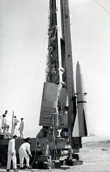The NOTS-EV-2 Caleb, also known as NOTS-500, Hi-Hoe and SIP was an expendable launch system, which was later used as a sounding rocket and prototype anti-satellite weapon. It was developed by the United States Navy's Naval Ordnance Test Station (NOTS)[1] as a follow-up to the NOTS-EV-1 Pilot, which had been abandoned following ten launches officially classified as failed missions.[2] Two were launched in July and October 1960, before the cancellation of the project.[1] Following cancellation, two leftover Calebs were used in the Satellite Interceptor Program (SIP), while three more were used as sounding rockets, under the designation Hi-Hoe.[1] These derivatives flew until July 1962, when the Hi-Hoe made its final flight.