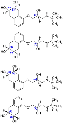 Nadolol is a mixture of stereoisomers. It is polar and hydrophilic, with low lipid solubility.[24]