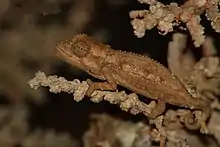 The Namaqua dwarf chameleon or the western dwarf chameleon (Bradypodion occidentale) occurs in beach vegetation, along the west coast of South Africa and Namibia.