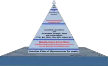 Any measurement made in a country should be directly or indirectly linked to the national standards of the country, For this purpose, a chain of laboratories are set up in different states of the country. The weights and measures used in daily life are tested in the laboratories and certified. It is the responsibility of the NPL to calibrate the measurement standards in these laboratories at different levels. In this manner, the measurements made in any part of the country are linked to the national standards and through them to the international standards.