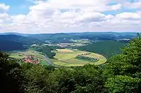 | Haßberge | 1974 | 804 | The park is characterized by the hilly landscape of the Haßberge. The long ridge slopes steeply towards the west but more gently towards the east due to the makeup of the geological rock layers. In the south, it is bordered by the valley of the river Main. | ![]() | |
