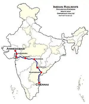 | Termini | Ahmedabad Junction (ADI) Chennai Central (MAS) | ||||