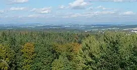 ![]() View of the Neuburg Forest from the Platte (499 m). Behind: the mountains of the Bavarian Forest. | |