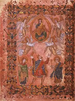- ↑ Karkov, Catherine (2008). "The frontispiece to the New Minster Charter and the King's Two Bodies". In Scragg, Donald (ed.). Edgar King of the English: New Interpretations. The Boydell Press. p. 225. ISBN 978-1-84383-399-4.