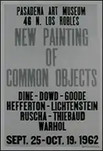 The exhibition "New Painting of Common Objects" at the Pasadena Art Museum in 1962 was the first museum survey of American pop art in the United States. The eight artists included were: Roy Lichtenstein, Jim Dine, Andy Warhol, Phillip Hefferton, Robert Dowd, Edward Ruscha, Joe Goode and Wayne Thiebaud. It was curated by Walter Hopps, who had given Andy Warhol his first solo show at the Ferus Gallery in Los Angeles the previous year. The show helped the pop art movement gain critical acceptance,[1] preceding the Guggenheim Museum's 1963 pop art exhibition "Six Painters and the Object", curated by Lawrence Alloway.