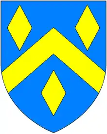 Arms of Hyde: Azure, a chevron between three lozenges or