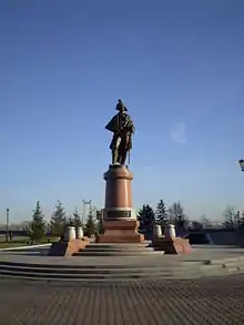 He died of fever and exhaustion in Krasny Yar (now Krasnoyarsk), Siberia, on March 8, 1807.[16] His grave was destroyed by Bolsheviks, but his remains were reburied. On October 28, 2000, at Rezanov's grave in the Trinity churchyard of Krasnoyarsk (where according to one account his remains were moved in the late 1950s) there was a service for the dead and the dedication of a memorial to Rezanov. Poets had taken up the story of Rezanov and Conchita, turning it into a famous romance in Russia. The memorial has a white cross, bearing on one side the inscription "Nikolai Petrovich Rezanov 1764 — 1807. I will never forget you", and on the other side — "Maria Concepcion de Arguelio 1791 — 1857. I will see you never more".