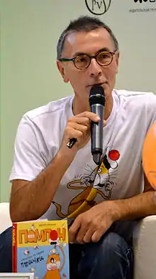 Nikolay Vorontsov presenting Cat Pompon books on Moscow Book Fair 2014