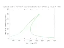 where is the oscillation amplitude and is a constant defined by the anharmonic coefficients. Second, the shape of the resonance curve is distorted (foldover effect). When the amplitude of the (sinusoidal) external force reaches a critical value instabilities appear. The critical value is given by the formula