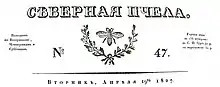 Northern Bee was founded by the reactionary writer (and police informer) Thaddeus Bulgarin in 1825.[1] In 1831 through 1849 he published it in conjunction with Nikolai Grech. From 1825 to 1831 it came out three times a week, then daily after that. The paper was pitched toward readers who belonged to the middle classes (the serving gentry, provincial landlords, officials, merchants, burghers). In addition to domestic and foreign news, literature, and criticism, the paper printed a mix of inspirational stories and philosophical essays, bibliographies, and fashion pieces.
