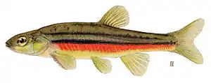 The northern redbelly dace (Chrosomus eos) is a fresh water cyprinid fish, generally found in lakes and small streams in the northeastern United States and eastern Canada. Ranging from 1–3 inches, it is one of forty-four species from the minnow and carp family of Cyprinidae in these areas.[2]