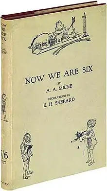 Now We Are Six is a 1927 book of children's poetry by A. A. Milne, with illustrations by E. H. Shepard. It is the second collection of children's poems following Milne's When We Were Very Young, which was first published in 1924. The collection contains thirty-five verses, including eleven poems that feature Winnie-the-Pooh illustrations.