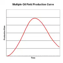Oil depletion is the decline in oil production of a well, oil field, or geographic area.[1] The Hubbert peak theory makes predictions of production rates based on prior discovery rates and anticipated production rates. Hubbert curves predict that the production curves of non-renewing resources approximate a bell curve. Thus, according to this theory, when the peak of production is passed, production rates enter an irreversible decline.[2][3]