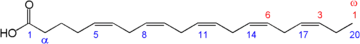 | Eicosatrienoic acid (ETE) | 20:3 (n−3) | all-cis-11,14,17-eicosatrienoic acid |
