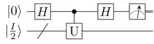 Trace estimation is complete for DQC1.[7] Let be a unitary matrix. Given a state , the Hadamard test can estimate where is the probability that the measured clean qubit is 0. mixed state inputs can be simulated by letting be chosen uniformly at random from computational basis states. When measured, the probability that the final result is 0 is[2]