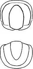 a drawing of Oodiscus subgranulatus, cephalon and pygidium