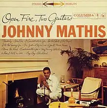 Open Fire, Two Guitars is an album by American pop singer Johnny Mathis that was released on January 5, 1959,[1] by Columbia Records on which he opts for guitar and bass accompaniment instead of performing alongside an orchestra. Two new songs ("An Open Fire" and "I'm Just a Boy in Love") are mixed in with covers of popular standards.