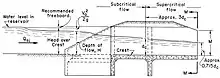 The United States Bureau of Reclamation (USBR) also uses the weir formula to quantify flow over a chute spillway. The USBR flow equation is:[5][6]
