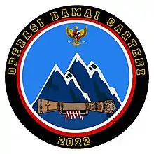 Operation Cartenz's Peace (Indonesian: Operasi Damai Cartenz),[14] formerly Operation Nemangkawi, is a joint-operation conducted by Indonesian National Armed Forces and Indonesian National Police to curb armed separatist rebels in Papua.[15] According to Papua Regional Police head, Mathius Fakhiri, there are currently six active separatist groups located mainly in Papua highlands.[16] While there are two groups which became less active or retired after Operation Nemangkawi. Tinggi Nambut faction under Goliath Tabuni were beaten in October 2018, and 10 members were subdued by Police. Goliath Tabuni moved to Gome District and presumed retired. Lanny Jaya faction under Purom Wenda became less active after Police operation in Balingga District and its headquarters in Kali Mau.[5] Some members of this group left and "return" to Indonesia.[17]