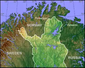 The German airfields at Petsamo (Finland) and Porsanger (Norway), the objectives of the May 1942 plan for Operation Jupiter. Note that the post-1947 national borders are shown.