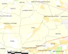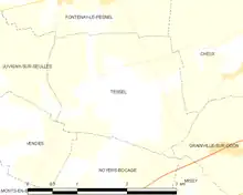 Operation Epsom, the VIII Corps attack due on 26 June, was vulnerable to a German counter-attack from the Rauray Spur, an area of high ground to the west, which overlooked the line of advance of 15th (Scottish) Infantry Division around the village of Cheux. On 25 June, XXX Corps was to conduct Operation Martlet, seizing the Noyers area to deprive the Germans of observation eastwards and the opportunity to counter-attack VIII Corps from the high ground. When the flank of VIII Corps had been secured, XXX Corps was to attack southwards towards Noyers and Aunay-sur-Odon.[7][8] The 49th Division was to reach the first objective ("Barracuda") on the road between Juvigny and Fontenay, with three battalions and then advance 1,000 yd (910 m) south to the second objective ("Walrus") at Tessel Wood and the farm at St. Nicholas, with two fresh battalions.[9] The division was then to advance to the final objective ("Albacore") at Rauray village and the Rauray Spur, to establish a line from Rauray to Vendes and Juvigny-sur-Seulles (Juvigny), to secure the right flank of the 15th (Scottish) Infantry Division.[10]