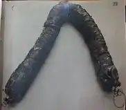Socks were long thin canvas bags of incendiary material each weighing about 6 lb (2.7 kg). Socks were packed with wood wool, bound with wire and soaked in boiling paraffin wax.[2][17] Each Outward balloon could carry three socks. The bundle measured about 27 in × 10 in × 10 in (690 mm × 250 mm × 250 mm).[19] When dropped, socks formed a Vshaped sausage designed to catch in the crown of a tree.[2] Fuses were inserted in each end of the device and it would burn from each end for 15 minutes.[2] In 1941 the Royal Navy had a stock of 10,000 such socks already fused and ready to be used and another 20,000 bodies that could be brought forward as required.[2][lower-alpha 4]