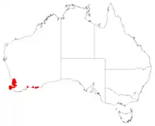It is found in the IBRA regions of Esperance Plains, Jarrah Forest, Swan Coastal Plain and Warren.[4]