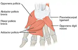 - ↑ "Opponens Pollicis (OP)". Washington University School of Medicine. Retrieved 2019-07-19.